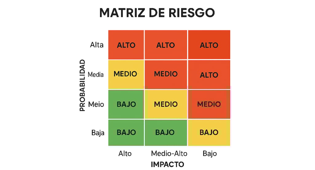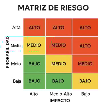 Seguridad corporativa: En entornos corporativos (oficinas, empresas comerciales), la matriz de riesgo se emplea para proteger activos y garantizar la continuidad del negocio. Supongamos el caso de una pequeña empresa donde se identificaron tres riesgos principales: (1) robo de equipos en las instalaciones, (2) fallo en el sistema de TI, y (3) **demoras en la entrega de materiales por proveedores. Al evaluarlos, el robo de equipos se calificó con probabilidad alta (4) e impacto muy alto (5), el fallo de TI con probabilidad media (3) e impacto alto (4), y las demoras con probabilidad alta (4) pero impacto moderado (3). Al plasmar esto en la matriz, quedó claro que el robo de equipo representaba el riesgo más crítico, demandando acciones inmediatas, mientras que las demoras, aunque frecuentes, eran menos dañinas. Gracias a este análisis, la empresa decidió concentrar sus recursos en mejorar la protección de sus activos físicos (por ejemplo, instalando controles de acceso y alarmas) y establecer sistemas de respaldo para la infraestructura informática. Así se mitigaron los riesgos prioritarios asegurando la operación y reduciendo potenciales pérdidas.